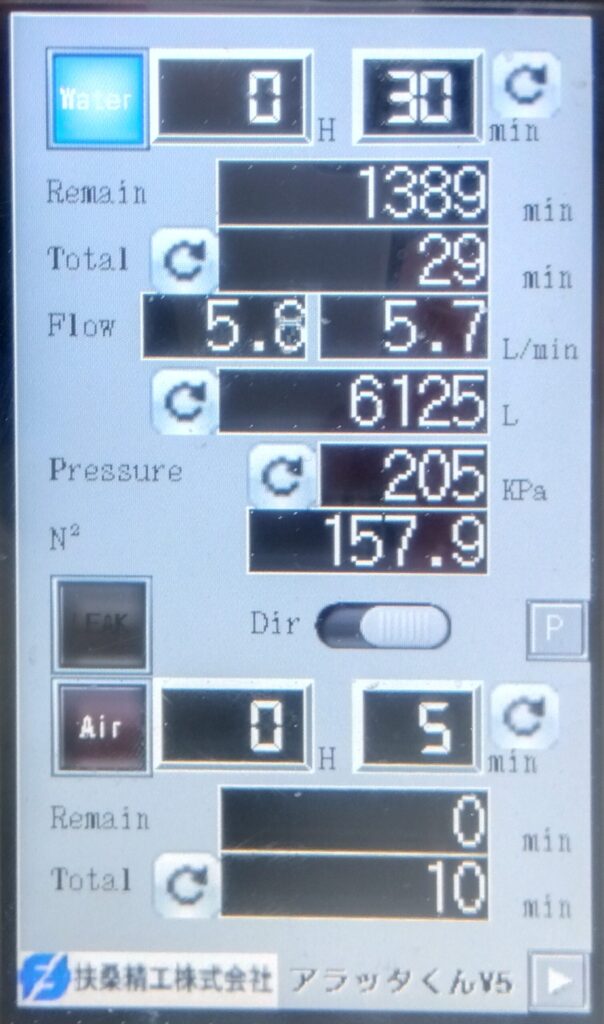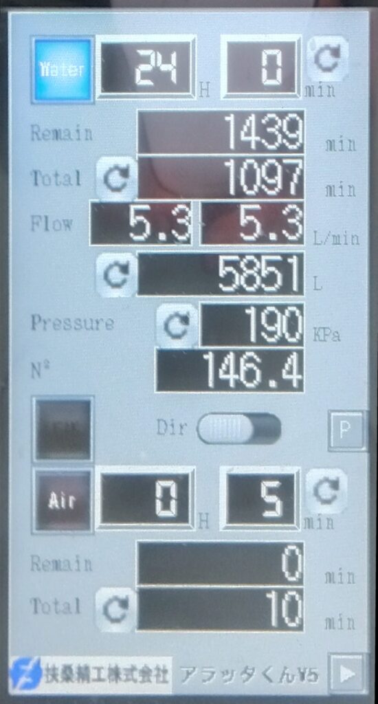 | 洗浄総流量 | — | 5851 L | 6125 L |
