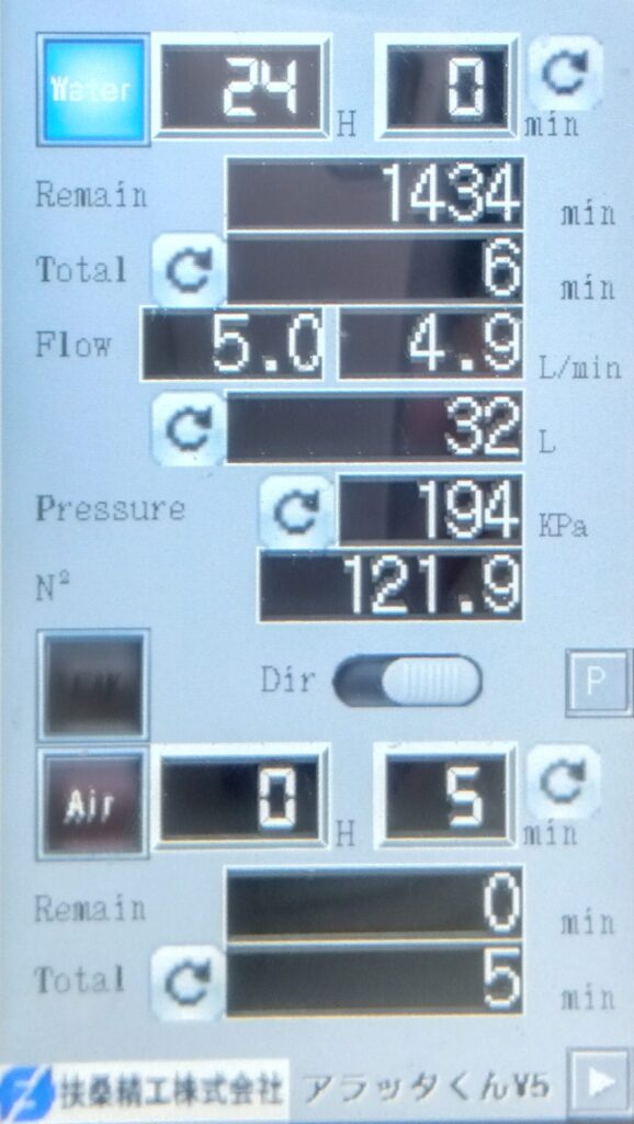 作業開始時流量4.9L/min