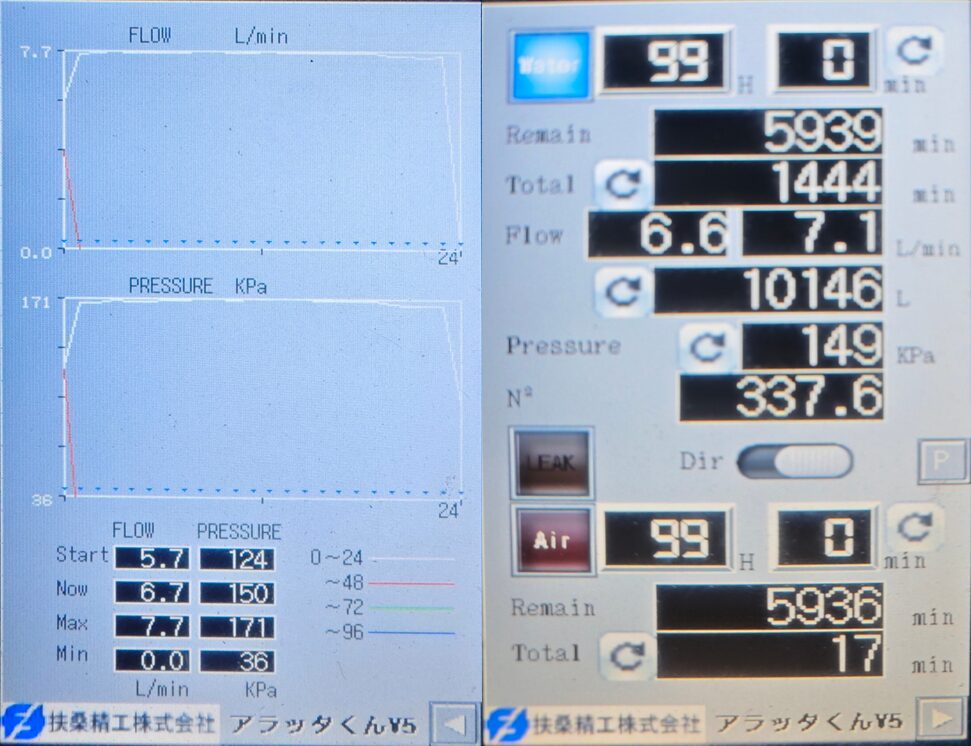 FP洗浄液を使用して、約24時間30分 計10,146Lで洗浄しました。