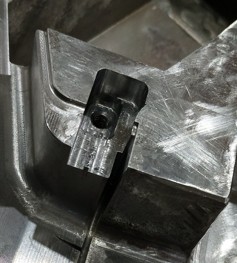 長年使用されていた射出成型機用金型にて、成形品の穴形状をつかさどる金型突合せ部位が疲労により破損してしまった金型のリペア対応を実施させて頂きました。当金型の製作メーカ様は廃業されており、弊社に修理のお声がけを頂きました。幸いにも製品モデルと、2Dの型図データがお客様の手元にあり、支給して頂けたため、弊社金型設計にて形状を重ね合わせ、最小限の現物型測で元々ついていたであろう金型形状を「新規入子化」にて復元することができました。 図面やデータがない場合でも、3Dスキャンや加工機上での測定、三次元測定機での測定等駆使し加工に必要なモデルを設計することはできますが、元のデータがある場合は、その点を省略でき、比較的はやく復元対応させることが出来ました。